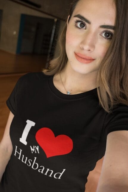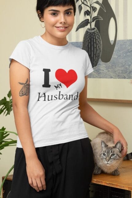 I love my Husband Trendy Front Printed Half Sleeves Regular Fit Round Neck T-shirt for Women